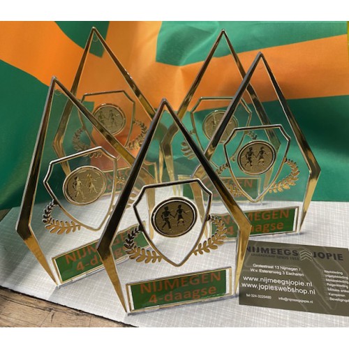 2025, 4-daagse piramide, plexiglas met wandelaars, met oranje text